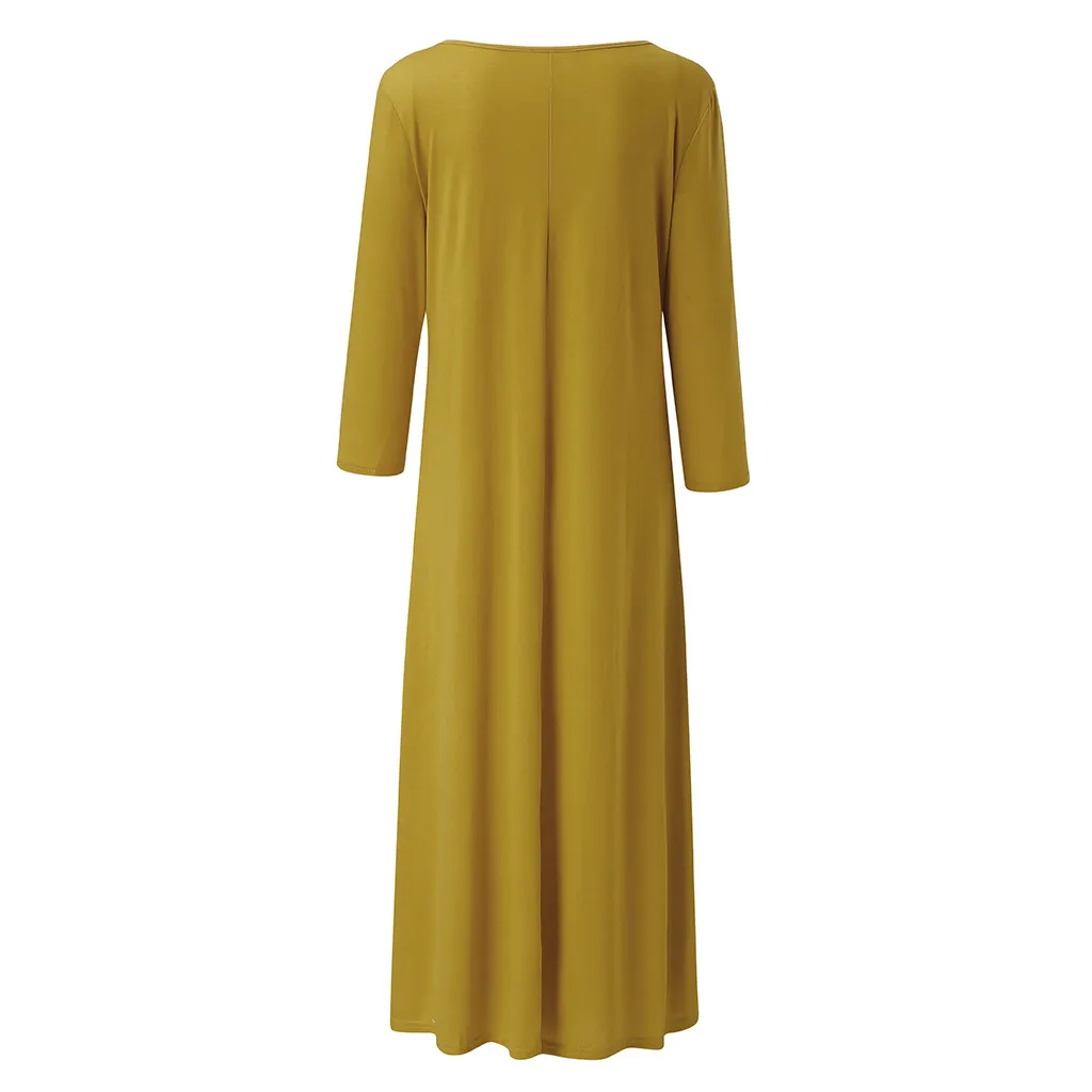 Femmes dames mode col rond à manches longues loisirs en vrac longue robe